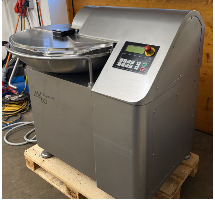 Cutter Seydelmann, modelo K60 DC6, en muy buen estado de uso y funcionamiento. La máquina funciona con 400 voltios, 22/40 kW, está fabricada íntegramente en acero inoxidable, cuenta con un cabezal de corte de 6 cuchillas, velocidades variables y permite combinar marcha adelante y atrás. Ha sido probada en taller y está lista para usar. Dimensiones: 130/105/110 cm.